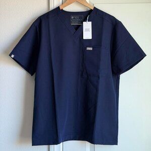 Figs Leon Three-Pocket Scrub Top in Black, Size Medium