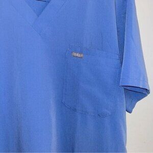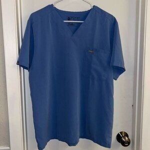 Figs Leon Three-Pocket Short Sleeve Medical Scrub Top In Ceil Blue Mens Medium