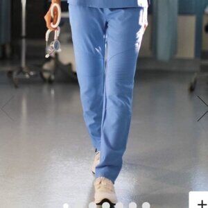 Excellent condition size XXS ceil blue moto jogger scrubs. Limited edition style no longer available. No stains, holes, flaws, or signs of wear.
