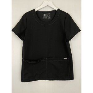 Figs Limited Edition Rama Scoop Neck Short Sleeve Scrub Top Black Pockets Size S