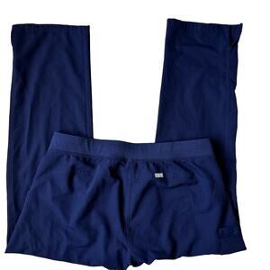 Comfortable straight leg pants. Elastic waistband with drawstring. Multiple pockets for convenience.