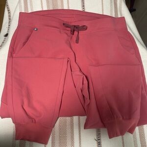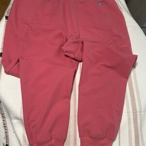 Stylish coral pants from Figs. Part of the Technical Collection. Ideal for healthcare professionals.