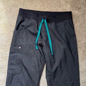 These Figs scrub pants are a must-have for anyone in the medical field. The gray color and S/P size make them a versatile addition to any work wardrobe. The brand, FIGS, is known for their high-quality and comfortable workwear, and these pants are no exception. They are perfect for long shifts and provide a stylish look that doesn't sacrifice comfort. These pants are a great choice for anyone looking for a reliable and fashionable scrub bottom. These scrub pants are in great condition with no tears or stains.