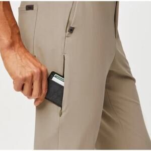 Figs men’s khaki chino scrub pants combine a polished, professional look with performance-level comfort. Made from a lightweight, water-repellent nylon-elastane blend, these slim-fit pants feature an elastic waistband with an adjustable interior drawcord, rubberized snap and zip fly, and bungee loop for a badge reel. Designed with six functional pockets, including front, back, zip, and interior security styles, plus four-way stretch for unrestricted movement. Ideal for medical professionals who want durability, style, and all-day wearability. Measurements are included in the photos. Excellent pre-owned condition.