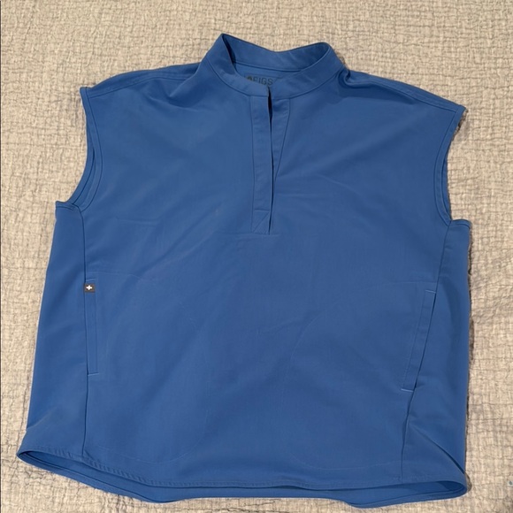 Figs scrub top in ceil blue size S. Only used for 5 months but does have a tiny stain on the front (see last pic)