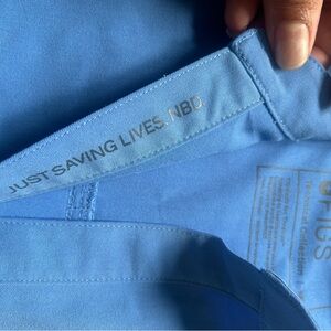 Bright blue scrub top from Figs. Perfect for everyday comfort. Soft and lightweight material.
