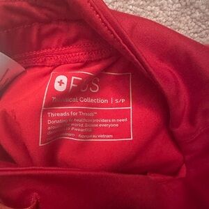 Bright red scrub set by Figs. Includes top and pants. Comfortable and stylish.