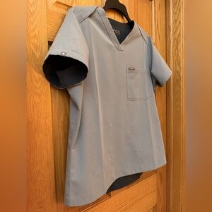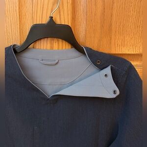 NWOT Women’s Large Dark Harbor/Dusty Blue Reversible V Neck Scrub Top by Figs. A combination of Casma and Catarina scrub top in one with rounded longer back