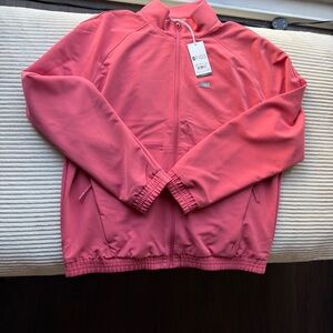 Coral zip-up scrub jacket. Comfortable and professional. Ideal for healthcare settings. FIGS Men’s Large. NEW with tags, never worn.