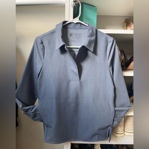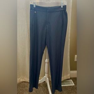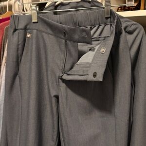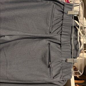 I added 2 photos in the listing. There’s no drawstring and there’s zip pockets on the back. Clean lines like a trouser. 😊