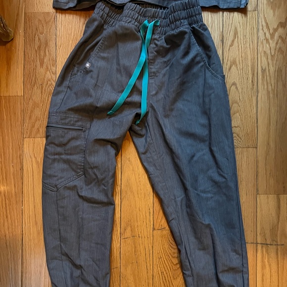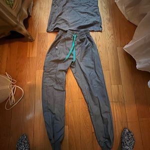 Gray scrub set! Can sell together or separately. High waist jogger pants- xxs/petite length. Top is xs. Lightly worn! In good condition
