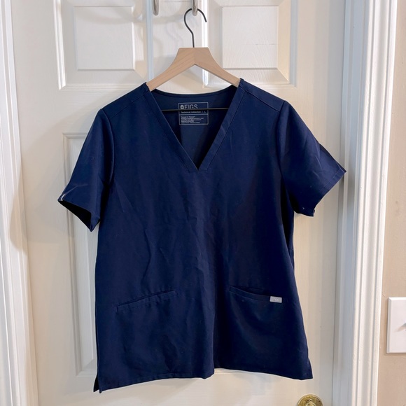 Figs scrub set navy size L. Cargo relaxed fit pant. Classic top with chest pocket.