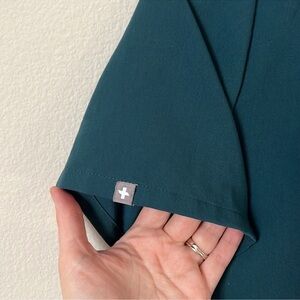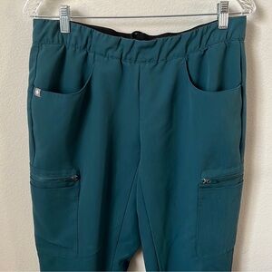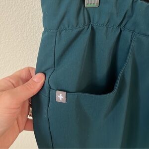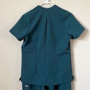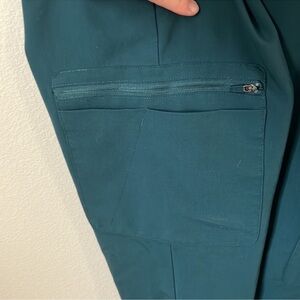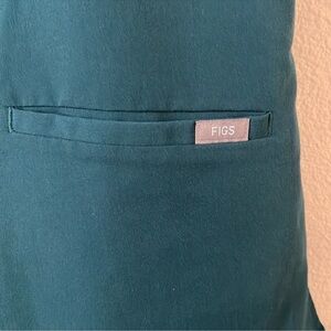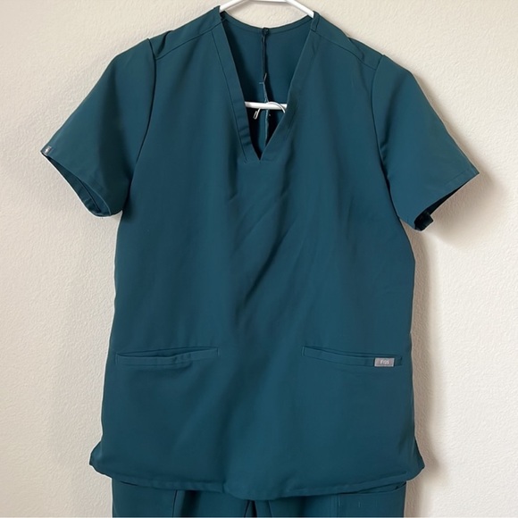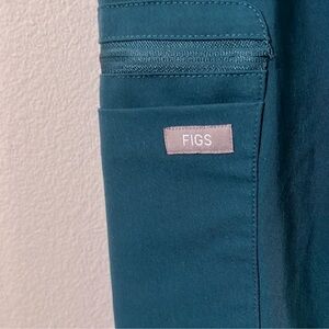 FIGS teal pocket shirt and joggers. Shirt has been taken in in the back!! Pit to pit is 19.5” with 26” shoulder to hem. Pants have thick comfort waistband and fit 16.5” across. Elastic bottoms, many pockets, keepsake pocket inside. Great set of scrubs!! Color is Carribean blue.