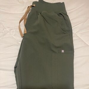 Color moss. Size large rafaela top/ high waisted yola scrub pants in size petite medium. Small bleach stains as shown.
