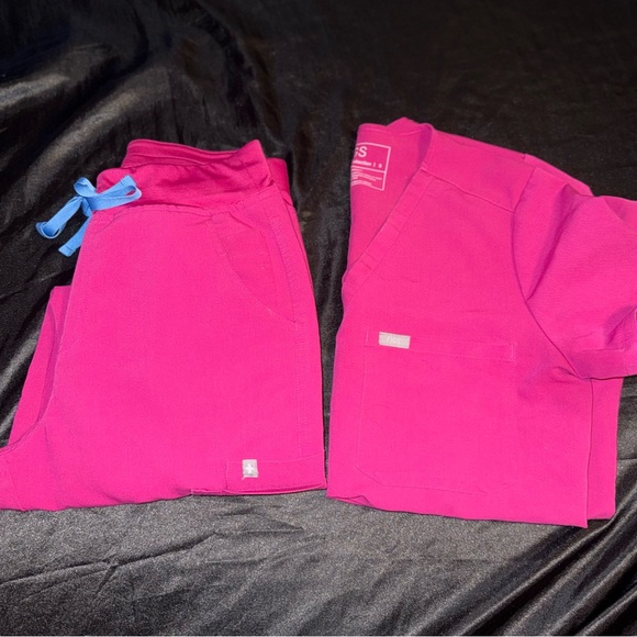 Figs Raspberry Sorbet Color Scrub Set. Top is size small. Bottoms are high waisted yola skinny, size small TALL. Used in good condition.