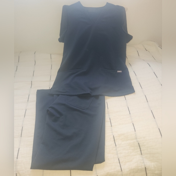 Figs scrub set. The bottoms are a medium and the top is a small. Both part of the technical collection. Color is a bluish/gray. No holes or stains. Smoke-free home. Goldendoodle friendly.