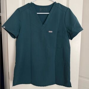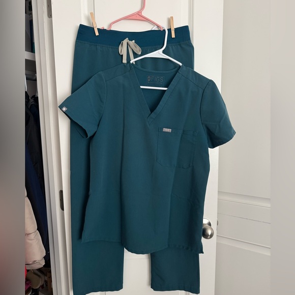Stylish scrubs by Figs. Includes a V-neck top and drawstring pants. To and bottom small.