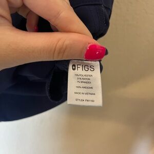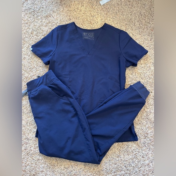 This is a size small navy Figs Scrub Set! Worn but no flaws, perfect condition! Both size small. Top is a navy Casma Three-Pocket Scrub Top and the pants are High Waisted Zamora Jogger Scrub Pants!