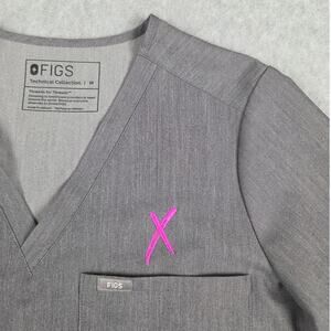 Figs Scrub Top Womens Medium Technical Collection Gray One Pocket Pink Ribbon
