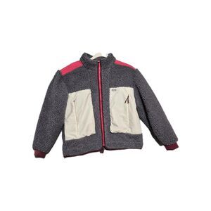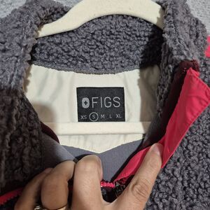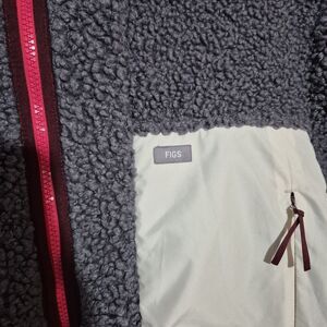 Figs Scrubs Selwyn Sherpa Jacket Bomber Full Zip Gray Pink Small W200W1019
