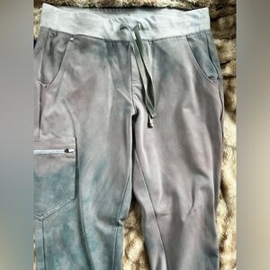 Figs Scrubs: White Tied Died: Pink/Teal/Grey: Medium: Casma Top & Zamora Joggers