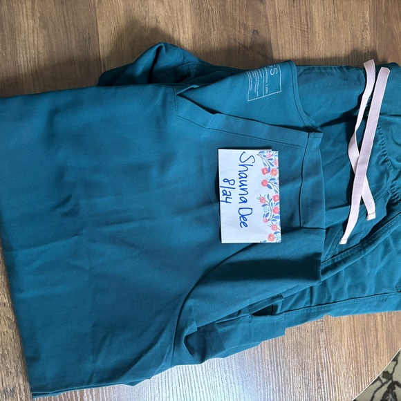 Caribbean Blue figs set. Top is Casma and bottoms are high waisted Yola. Both 2XL