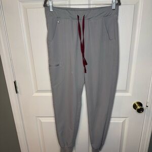 Figs Tansen Jogger Scrub Pants Gray with Red Drawstring Size Medium Tall GUC