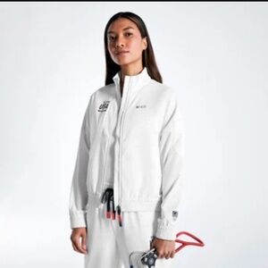 This is in a women’s size medium (M). The jacket is in the color white.