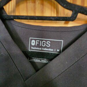 Figs Technical Collection Black V-Neck Short Sleeve Scrub Top W/ Pocket Size M