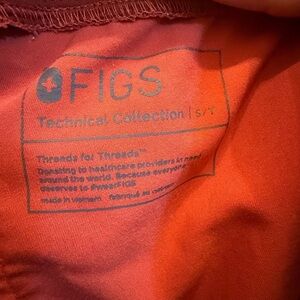 Stylish red scrub set from Figs. Features a comfortable fit.