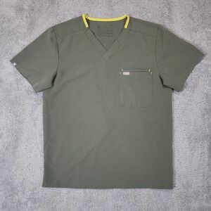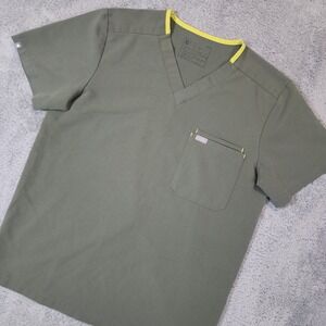 Figs Technical Collection Scrub Mens M Green Yellow Trim Stretch Double Pocket