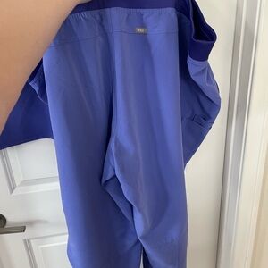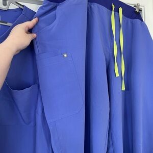 Comfortable blue scrub set. Includes top and pants. Ideal for medical professionals.