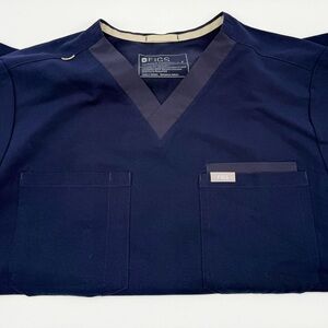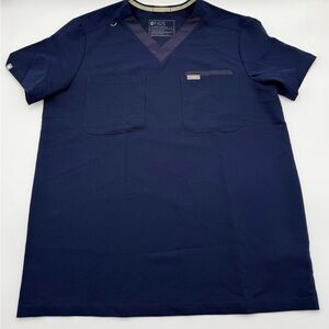 Figs scrub top with V-neck. Men’s size small. Pockets on right and left side of chest. No rips or stains.