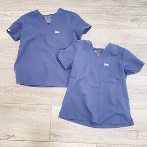 Figs Technical Collection Scrub Tops Womens XS 2pc Navy Uniform Pocket Catarina