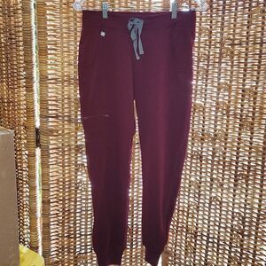 This is a pair of Figs Technical Collection Scrub Pants. They are like a maroon color.