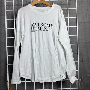 Figs White Cotton Top Awesome Humans Long Sleeve Tee Shirt workwear medical scub