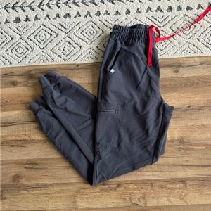 Charcoal gray figs set, small tall pants, size small top. able to sell separately.