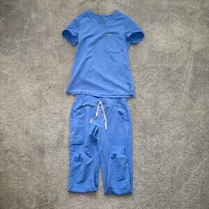 Figs Women’s Scrubs Set XS Petite Zamora Jogger Pant, XXS Catarina Top Blue