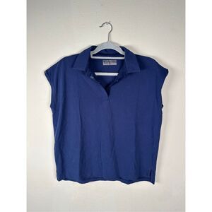 Figs Women's Size Medium Navy Blue FIGSPRO Pique Drop Shoulder Polo Scrub Top
