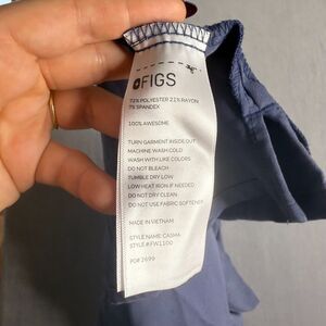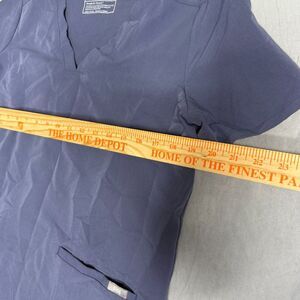 Slate blue color. Comfortable V-neck scrub top. Features short sleeves and two front pockets.