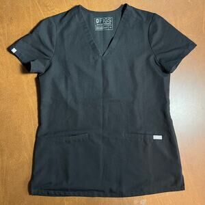 Figs XS Casma Three Pocket Black Scrub Top Short Sleeve FW1100