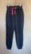 Pull-on style with yoga waistband and drawstring. Jogger style with elasticized cuffs. Zippered cargo pocket on one side. Limited edition color: Night Sky (grey-ish blue with pink drawstring)