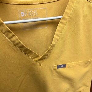 Bright yellow scrub set by Figs. Includes top and pants. Comfortable and stylish.