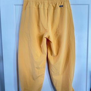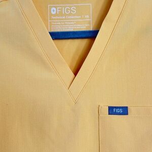 Comfortable yellow scrub set. Includes top and pants. Ideal for healthcare professionals.
