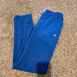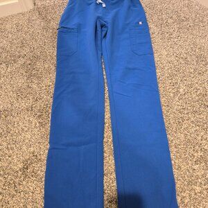 Figs Yola High Waisted Skinny scrub pants. These are royal blue and a size XS Tall. They measure as follows: waist-28 inches, hips-30 inches, rise-9 inches, and inseam-31 inches.