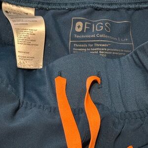 Experience ultimate comfort with these Figs joggers, featuring a deep navy blue hue and a vibrant orange drawstring for a pop of color. Crafted from a soft, textured fabric, these sweatpants offer a relaxed fit perfect for lounging or casual outings. The elasticized waistband ensures a snug, adjustable fit for all-day wear.