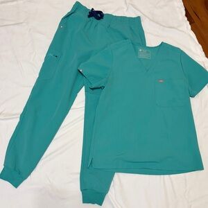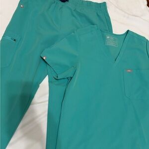Figs scrub set in surgical green. Both size medium. In good used condition