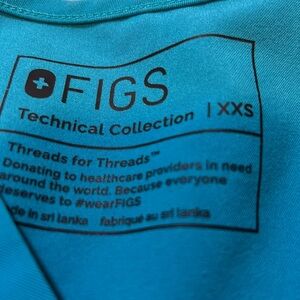 Figs scrubs in teal top is XXS and bottoms are XS petite