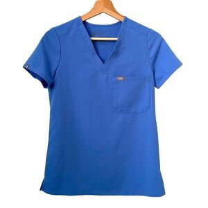 - Look sharp and feel comfortable throughout your shift with this FIGS V-neck scrub top in a sleek blue tone. Designed for performance and fit, this top features a flattering cut, breathable fabric, and FIGS’ signature modern style — made for healthcare professionals who demand both function and fashion.
