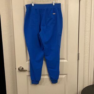 Figs scrub pants, joggers size extra large the color is blue in good preowned condition. Normal wear and tear. See pictures for more details. Has two front pockets. Also has a side pocket. Also has two back pockets.
